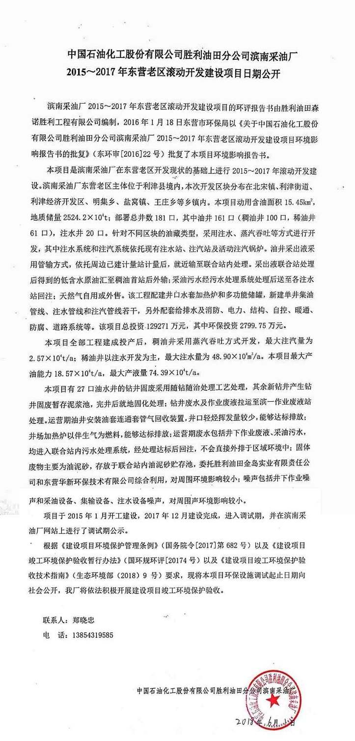 中國石油化工股份有限公司勝利油田分公司濱南采油廠2015~2017年東營老區(qū)滾動開發(fā)建設(shè)項(xiàng)目日期公開